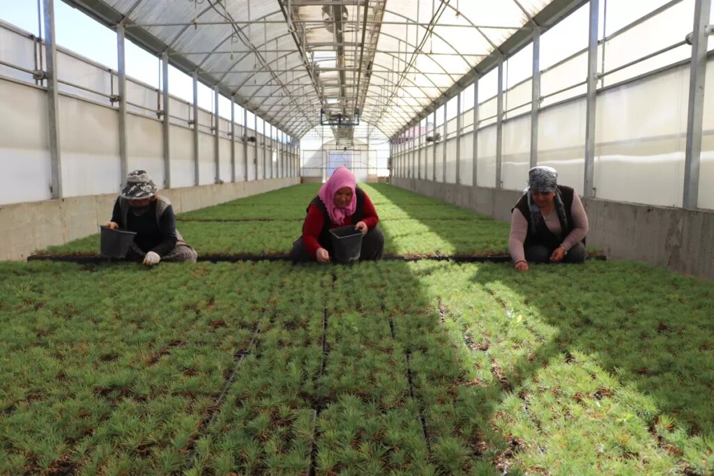 Kocasinan ilçesi Mithatpaşa Mahallesi’nde 60 hektar alanda kurulan ve yılda 3 milyon fidan kapasiteli Kayseri Orman Fidanlık Şefliği’nde fidanlar bayan çalışanlar tarafından itinayla yetiştiriliyor. Tesiste çalışan bayanlar, fidanların dikiminden çapalanmasına, yabani otların temizlenmesinden sulamasına kadar bakımlarını titizlikle yapıyor. Bayan çalışanlar tarafından yeşertilen 1 milyon 200 bin fidan, büyük orman yangınlarının olduğu bölgeler başta olmak üzere Kayseri ve civarında, erozyonla uğraş ve ormanlaştırma projelerinin olduğu bölgelere gönderilip toprakla buluşturuluyor.